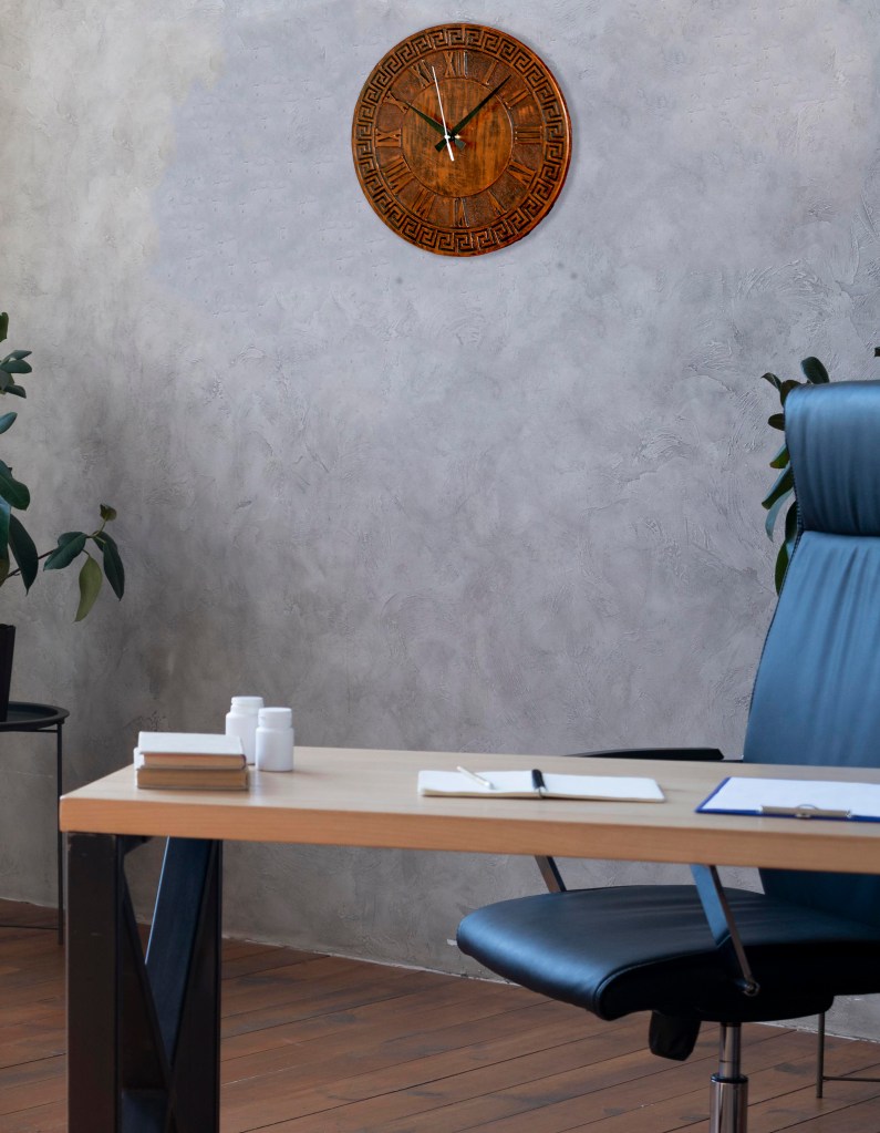38 cm çapındaki bu ürün 8 mm MDF’den CNC ‘de işlenmiştir. Sessiz Mekanizma, Metalik Bakır Boya ile eskitme uygulandı.